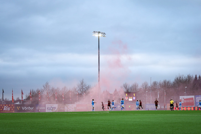 Aðstæður: Skýjað, sjö gráður og full stúka