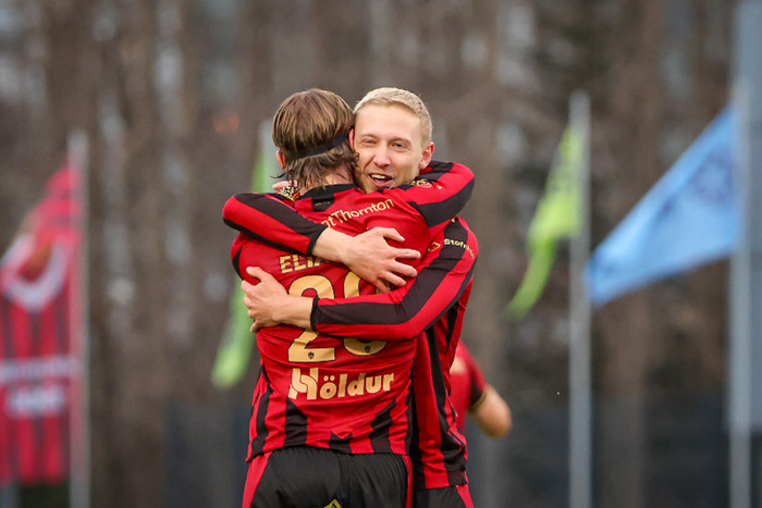 „Það er búin að vera tryllt stemning, það voru mikil læti fyrir norðan, þeir sem komu mættu með trommur og fána. Það var svo tryllt stemning á FH leiknum og það skilar sér alveg svakalega til liðsins.
