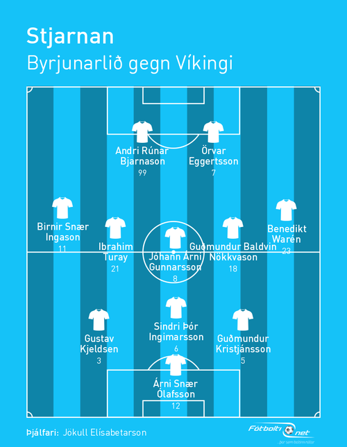 Emil Atlason stífnaði upp í síðasta leik gegn FH og er því utan hóps í dag. Í hans stað kemur Andri Rúnar Bjarnason en hann skoraði sigurmark Stjörnunnar gegn FH síðastliðinn föstudag.