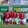 Tryggvi með hornspyrnuna fyrir Valsara. Aftur kemur hann með háan bolta á fjærstöngina en núna aðeins nær markinu. Hörður er mættur á fjærstöngina og rís hærra en aðrir, nær svo að stanga boltanum inn af stuttu færi!