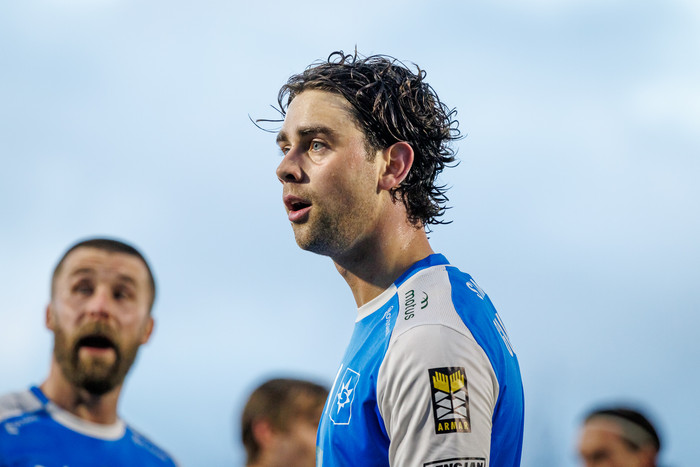 Birnir Snær aftur á vinstri kant með fyrirgjöf inn í teig sem er að fara á Örvar en Veldman með góða vörn og pressu