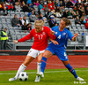 Isabelle Herlovsen á skot framhjá úr teignum eftir varnarmistök hjá íslenska liðinu.
