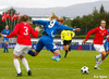 Fanndís reynir skot utan af velli en boltinn flýgur hátt yfir. Fanndís hefur verið spræk í leiknum og látið Akerhaugen vinstri bakvörð hafa fyrir hlutunum.