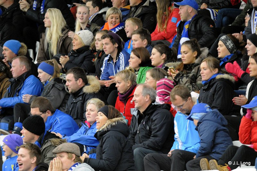 Það er stuð í stúkunni og áhorfendur beggja liða láta vel í sér heyra. Ólsarar líklegri til að jafna en FH að bæta við.
