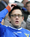 "Sestu niður Ejub! Þú ert alltaf vælandi!!!" öskrar áhorfandi (líklega FH). Ejub lítur uppí stúku og hristir hausinn... og sest ekki niður.