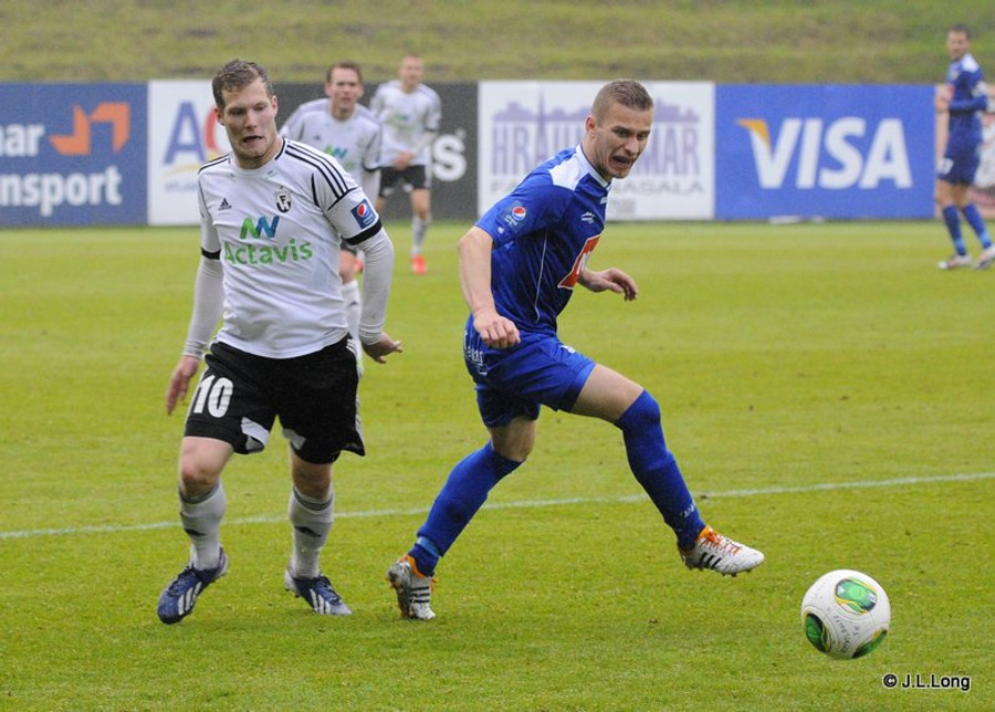 Insa átti góðan sprett úr vörninni og frábæra sendingu á Guðmund sem slapp einn í gegn.