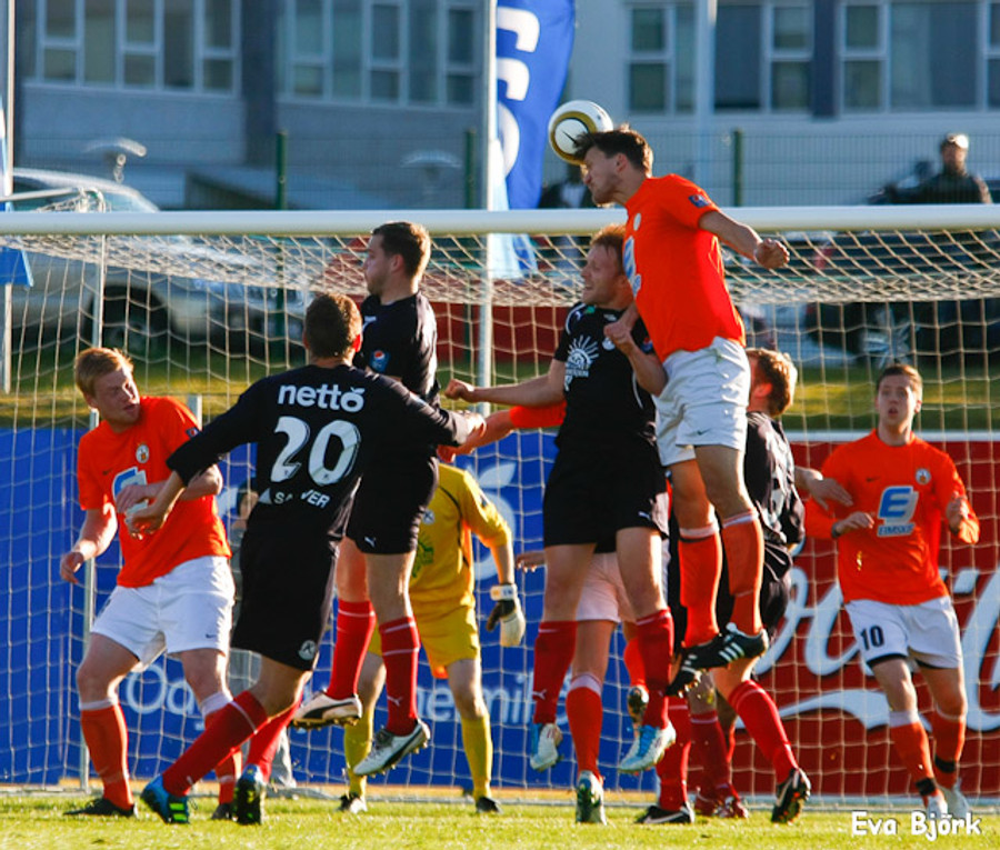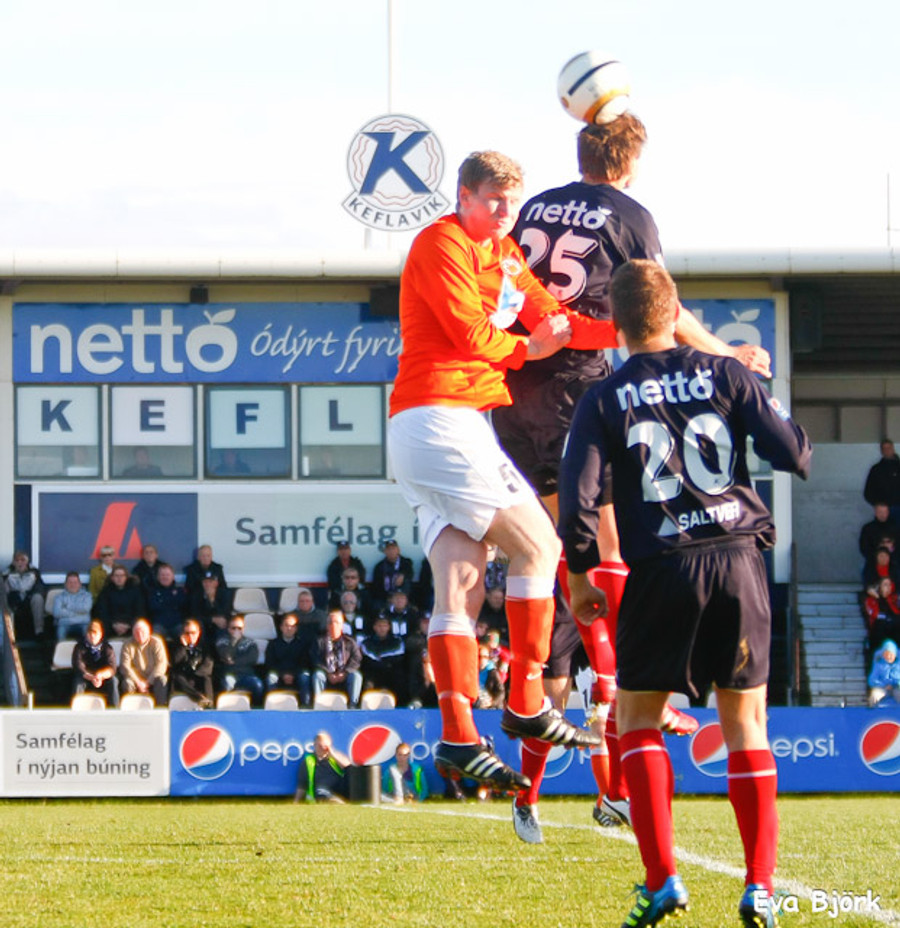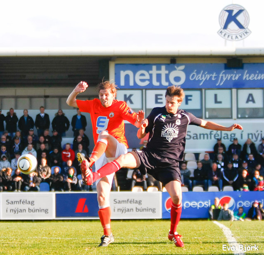 Frans Elvarsson kemur Keflvíkingum yfir eftir einungis 47 sekúndur með sínu fyrsta marki í Pepsi-deildinni. Hilmar Geir Eiðsson átti fyrirgjöf frá hægri og Frans skallaði í netið af stuttu færi! Frans er að leika sinn þriðja leik í byrjunarliði í sumar en hann var í láni hjá Njarðvík fyrri hluta tímabils.
