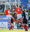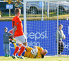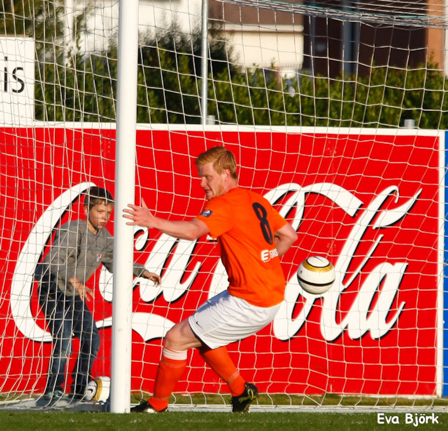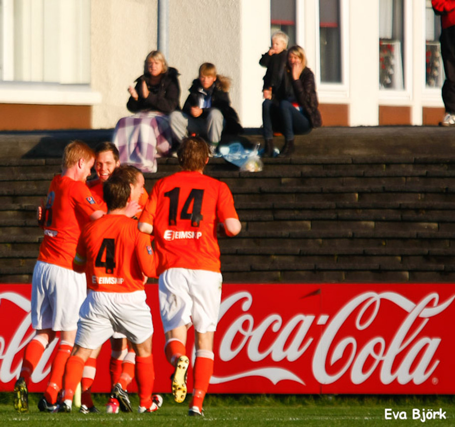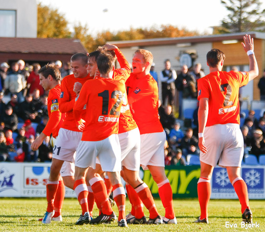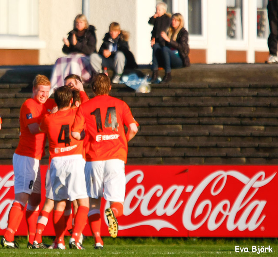 Keflvíkingar jafna. Guðmundur Steinarsson hafði betur í baráttu við Skúla Jón Friðgeirsson og átti fasta fyrirgjöf. Hannes Þór Halldórsson náði ekki að halda boltanum og Magnús Þórir Matthíasson nýtti sér það með því að skora í autt markið.