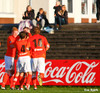 Liðin eru mætt inn á völinn. Áhorfendur eru ekki mjög margir en búast má við að sumir komi með seinni skipunum vegna leiktímans.