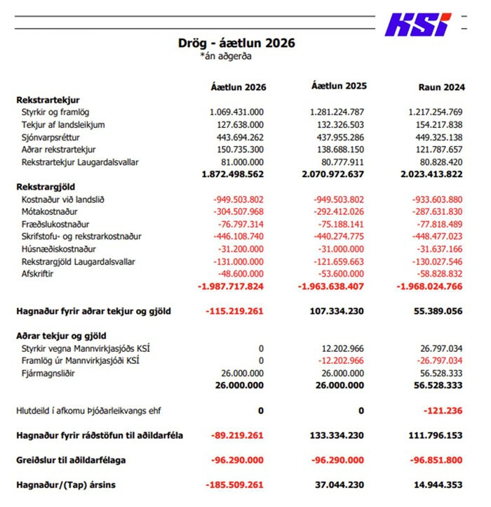 UTAN VALLAR: KSÍ sér fram á 185 milljón króna taprekstur árið 2026