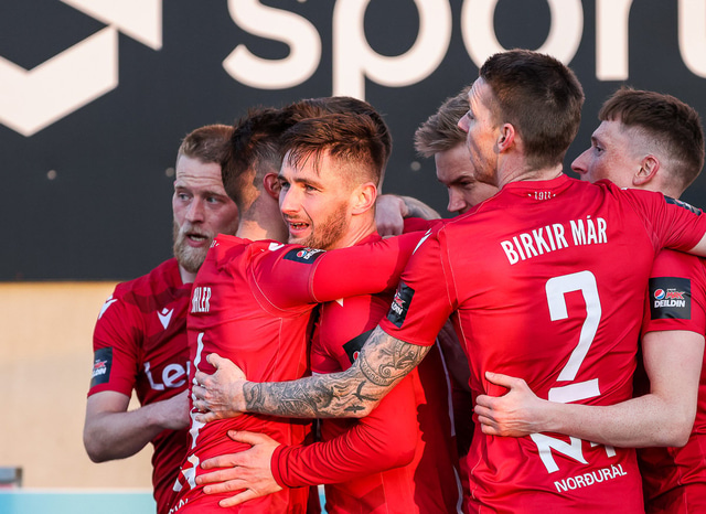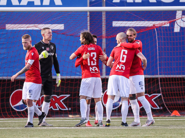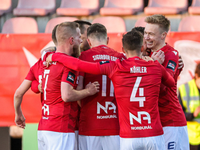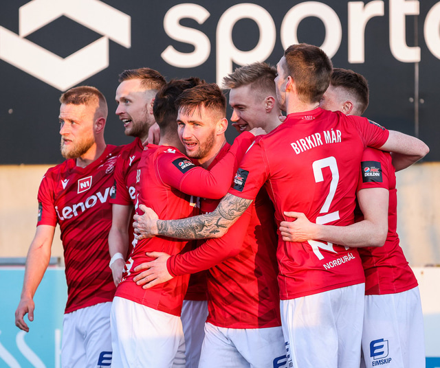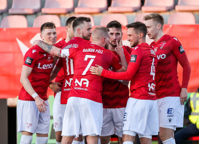 Valur vann 2 - 0 sigur á ÍA í opnunarleik Pepsi Max-deildar karla í gærkvöldi. Hér að neðan er myndaveisla úr leiknum.