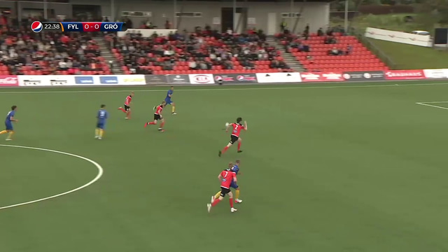 - Á 23 mínútu lauk þessum opna kafla þar sem Gróttumenn komust þrívegis í stöðu til að komast yfir. Eftir að Axel Sig. komst inn í teig Fylkismanna ná þeir að hreinsa og boltinn berst alla leið til Hákonar í marki Gróttu sem þrumaði boltanum í burtu.