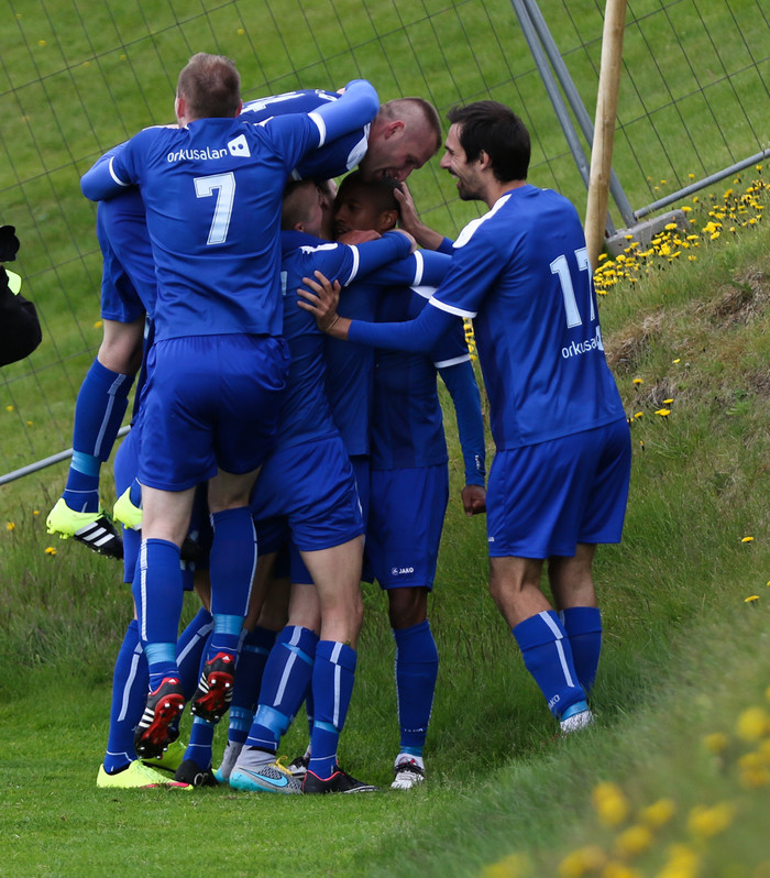 Víkingar frá Ólafsvík tryggðu sér sigur í 1.deild með 7-2 sigri í Grindavík og því var fagnað með sigursöng í klefanum.