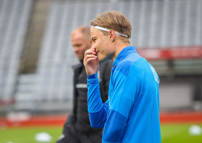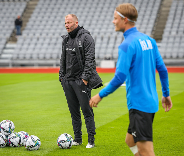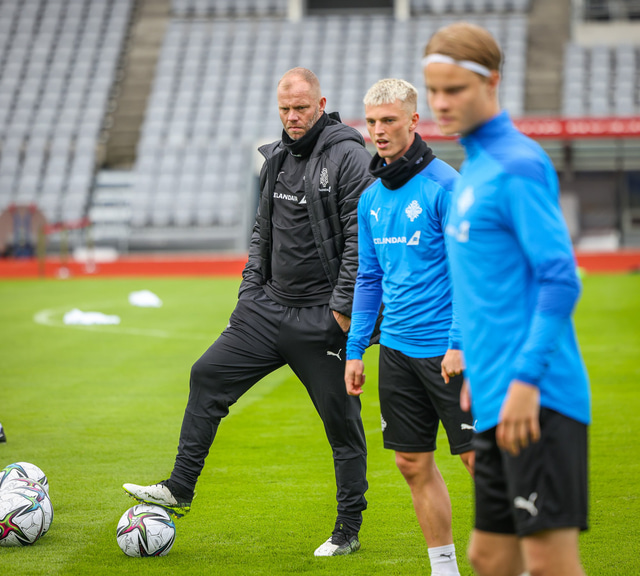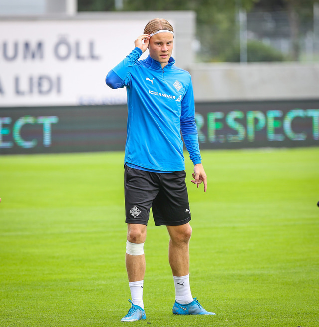 „Andri Lucas er einn af okkar efnilegustu leikmönnum. Hann er byrjaður að spila með varaliði Real Madrid sem spilar í deildarkeppni á Spáni. Það er alvöru fullorðinsfótbolti. Hann meiddist fyrir ári síðan en er búinn að taka heilt undirbúningstímabil með Real Madrid, búinn að spila mikið á undirbúningstímabilinu," sagði Arnar Þór Viðarsson, landsliðsþjálfari, á blaðamannafundi þegar hann var spurður út í Andra Lucas.
