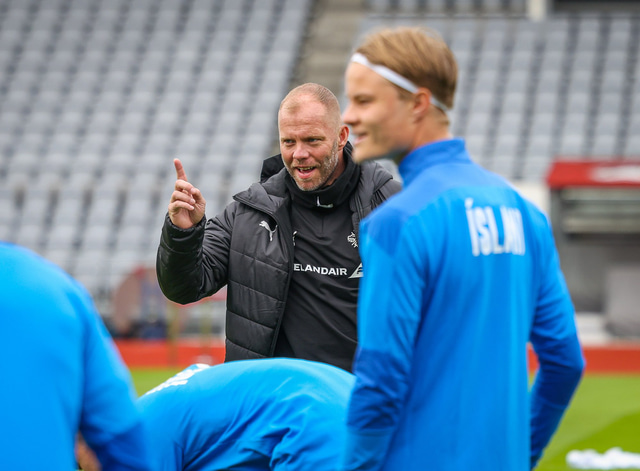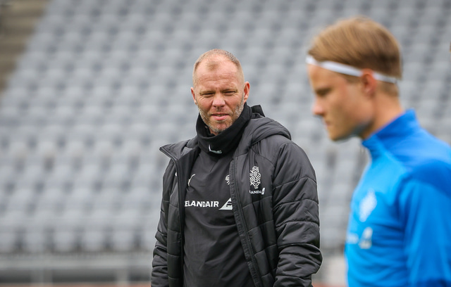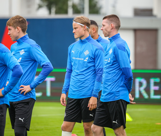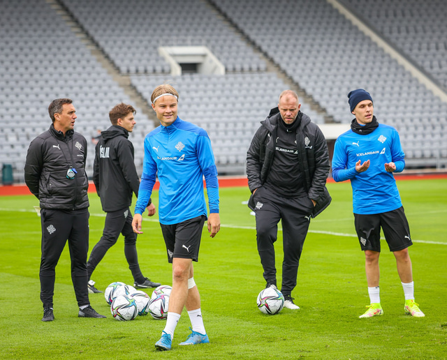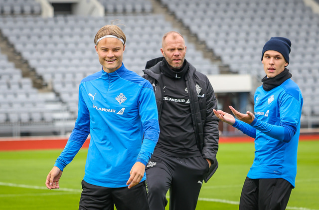 Landsliðið æfði saman í gær og mætti Hafliði Breiðfjörð með myndavélina. Hann tók nokkrar myndir af Guðjohnsen-feðgunum á æfingunni. Myndirnar má sjá hér að neðan.