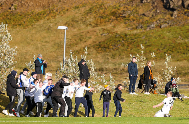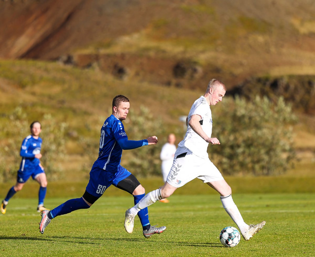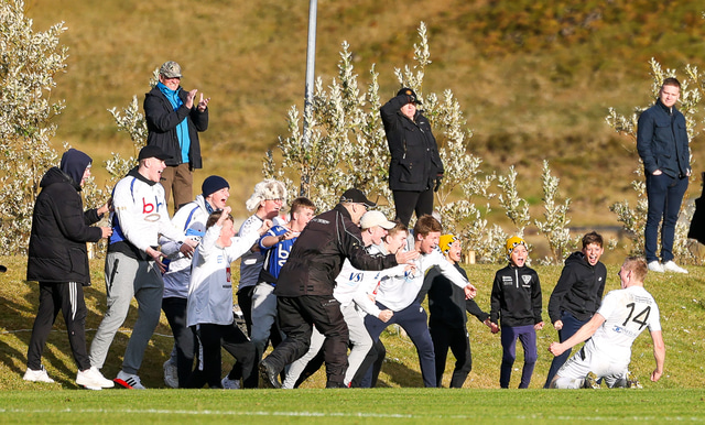 KFS er komið í 3. deild karla eftir að hafa unnið 0 - 1 sigur á Hamri í Hveragerði í gær en samanlögð úrslit urðu 2 - 0 sigur KFS í umspilinu. Hér að neðan er fjöldi mynda af Grýluvelli.