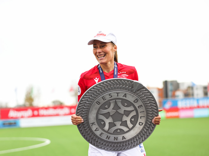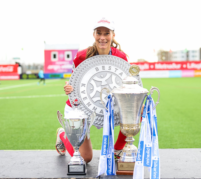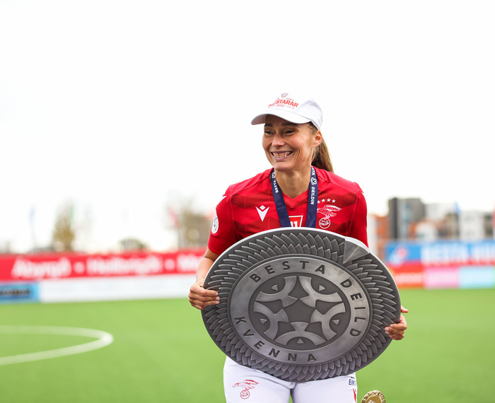 „Það er eiginlega lygilegt að fá að enda þetta sem tvöfaldur meistari... ég man í fyrra þegar ég sá Kára (Árnason) og Sölva (Geir Ottesen) að mér fannst það æðislegt að sjá það. Ég hugsaði um að það yrði frábært að enda eins og þeir. Það er draumi líkast að fá að enda þetta með öllum í Val svona," segir Adda en Kári og Sölvi urðu báðir tvöfaldir meistarar með Víkingum í fyrra og hættu svo.
