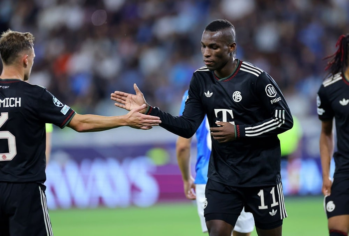 Nicolas Jackson, framherji Bayern, var í skýjunum eftir að hann skoraði sitt fyrsta mark fyrir félagið í öruggum 5-1 sigri gegn Pafos frá Kýpur í deildarkeppni Meistaradeildarinnar í gær.