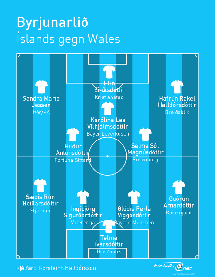 Búið er að opinbera byrjunarlið Íslands fyrir leikinn gegn Wales í Þjóðadeild kvenna í kvöld. Flautað verður til leiks núna klukkan 19:15 ytra.