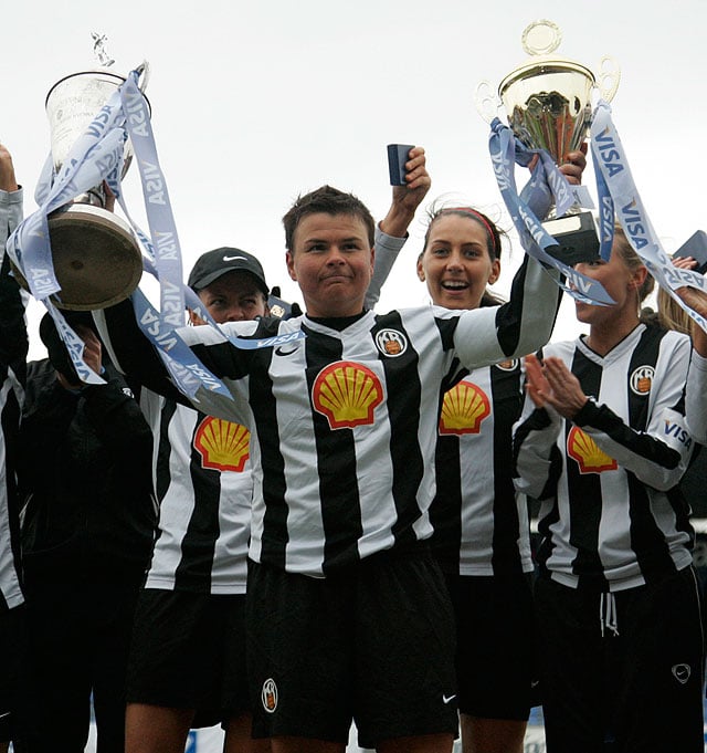 Guðný Björk Óðinsdóttir. Margrét Lára og Guðný (lengst til vinstri) léku saman bæði hjá Val og Kristianstad.