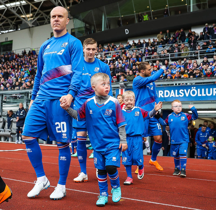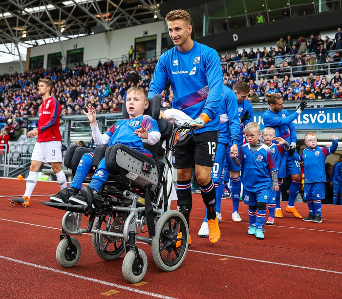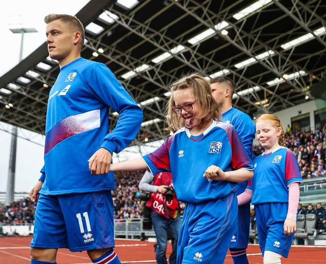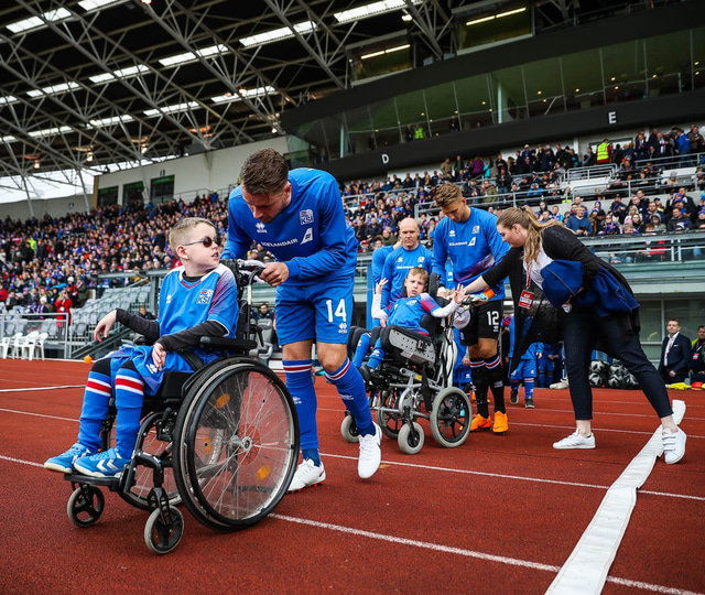 Krakkarnir sem leiddu liðin inn á völlinn fyrir vináttuleik karlalandsliða Íslands og Noregs koma úr röðum fatlaðra íþróttamanna, nánar tiltekið úr Klettaskóla. Markmiðið að vekja athygli á því að knattspyrna er íþrótt fyrir alla.