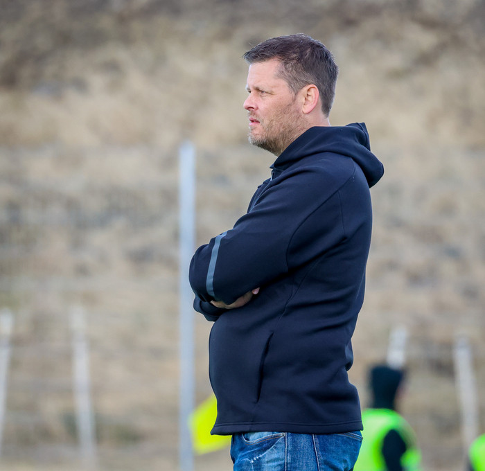 „Nei ég var nú ekki að gera það, en hver veit hvað farmtíðin ber í skauti sér. Ég er ekki búinn að gefast upp en maður veit það sem fótboltaþjálfari að það er ákvörðun stjórnar hverju sinni hvort maður haldi áfram með liðið og hvenær. Ég er með ótímabundinn samning og þriggja mánaða uppsagnarfrest eins og venjulegur starfsmaður. Mér finnst margt hafa gengið vel en það er mótbyr núna."