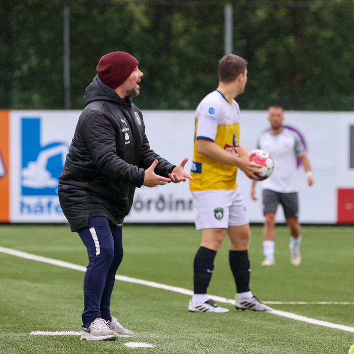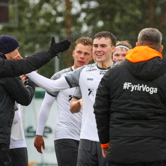 Guðjón Baldvinsson sneri aftur í fótboltann og tryggði KFG stig gegn Þrótti Vogum í 2. deild karla í fyrrakvöld. Hér að neðan er myndaveisla frá Helga Þór Gunnarssyni.