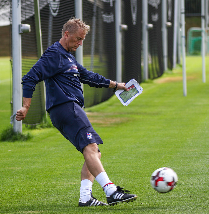 „Það er búið að vera fínt tempó á æfingum og menn fókuseraðir," segir Heimir Hallgrímsson, þjálfari íslenska landsliðsins. Liðið er við æfingar í Þýskalandi en mun svo ferðast til Úkraínu á morgun í fyrsta leikinn í undankeppni HM sem verður á mánudagskvöld.