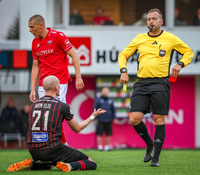 Hareide virtist skemmta sér stórvel á leiknum en hann endaði með 3-2 sigri Víkings sem lenti tveimur mörkum undir.