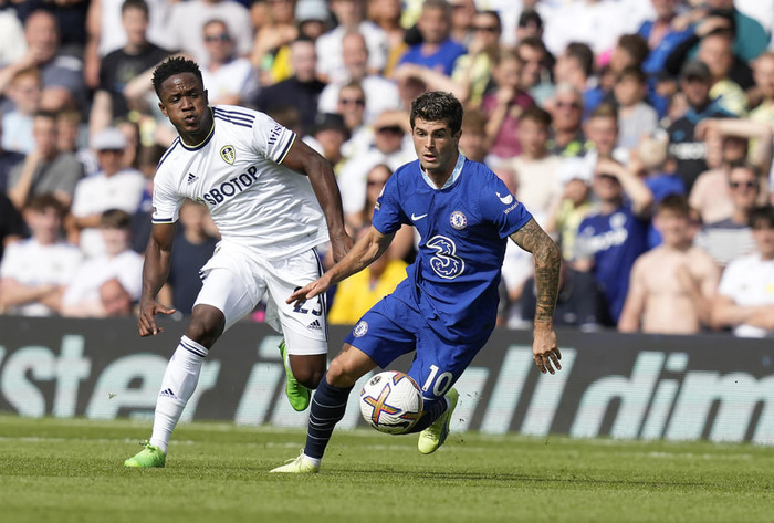 Kólumbíski vængmaðurinn Luis Sinisterra var rekinn af velli á 49. mínútu leiksins eftir ljóta tæklingu á Jacob Ramsey og hann því sendur í sturtu.