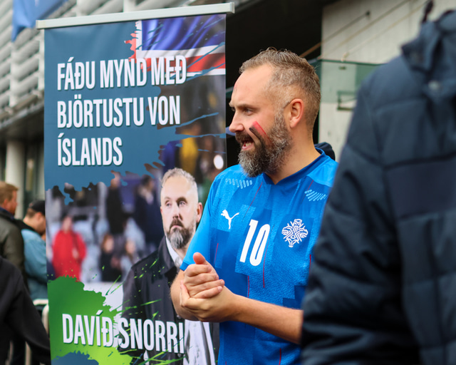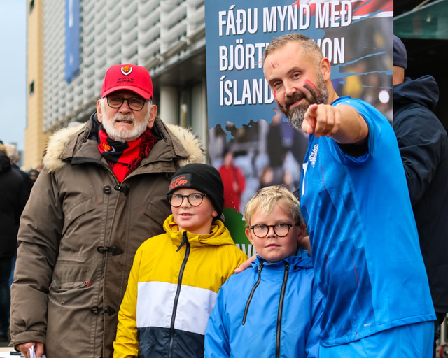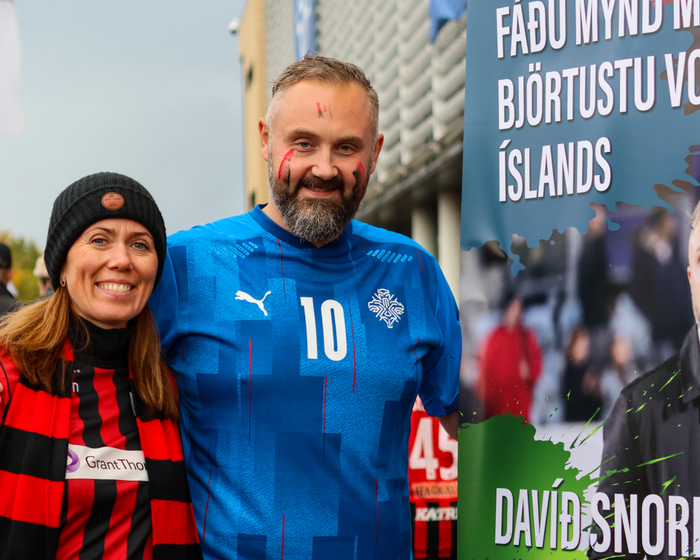 Hópur fólks fékk í gær mynd af sér með björtustu von Íslands fyrir úrslitaleik Mjólkurbikars karla.