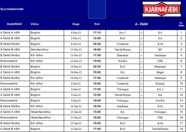 Kjarnafæðismótið í knattspyrnu, sem haldið er af Knattspyrnudómarafélagi Norðurlands, hefst á morgun og er leikið bæði í karla- og kvennaflokki.
