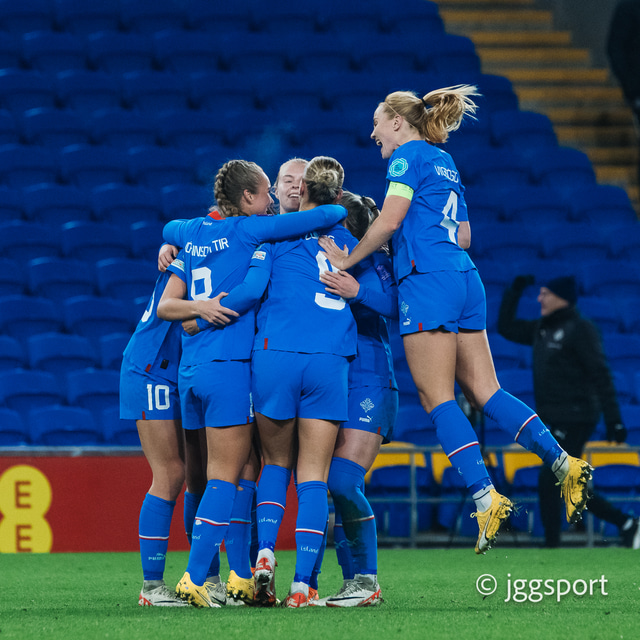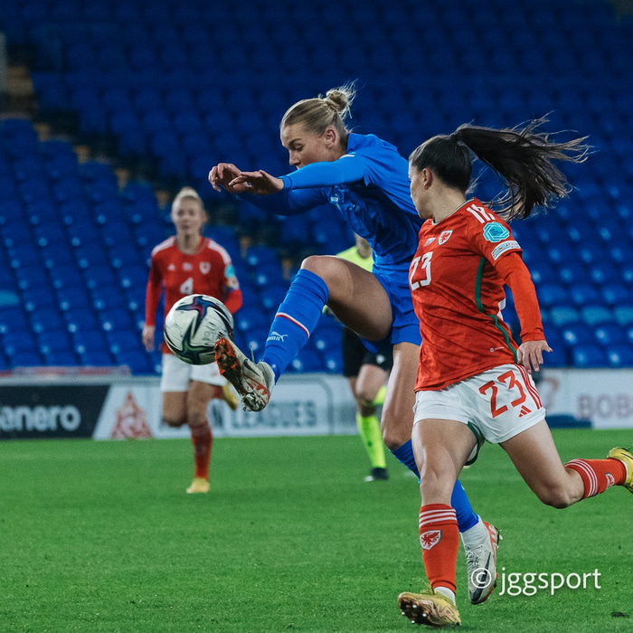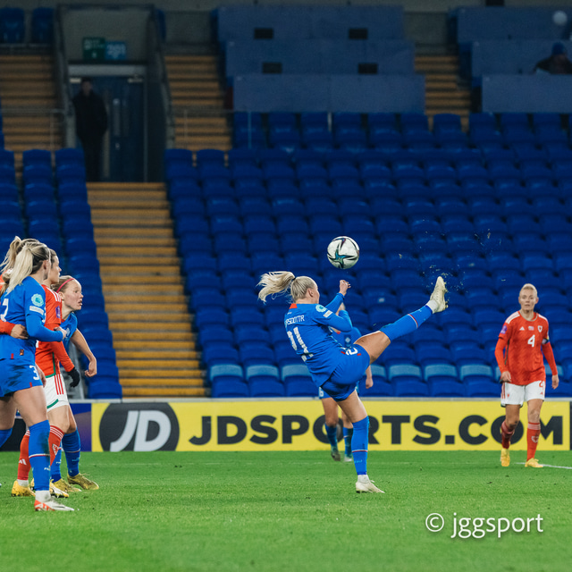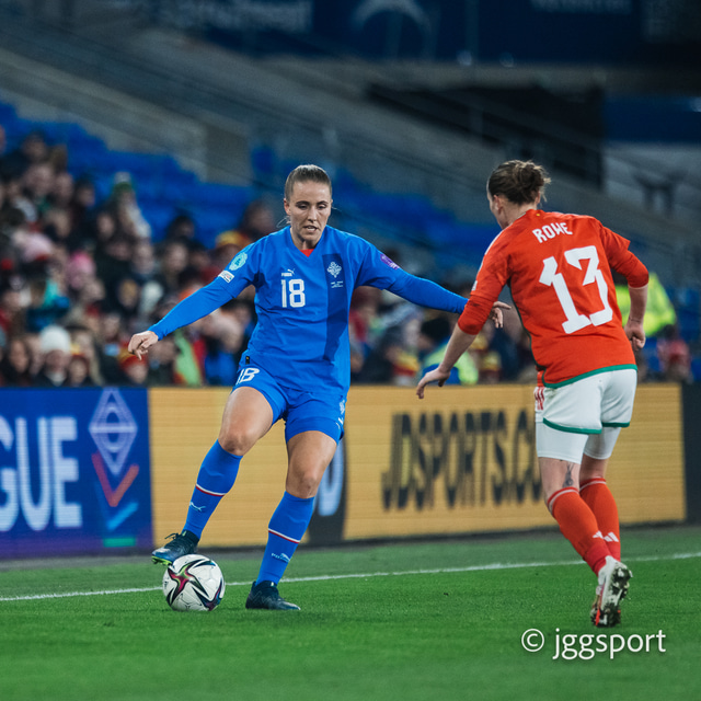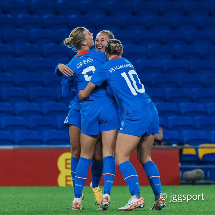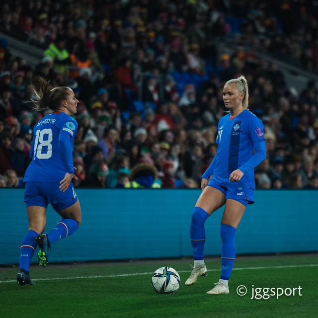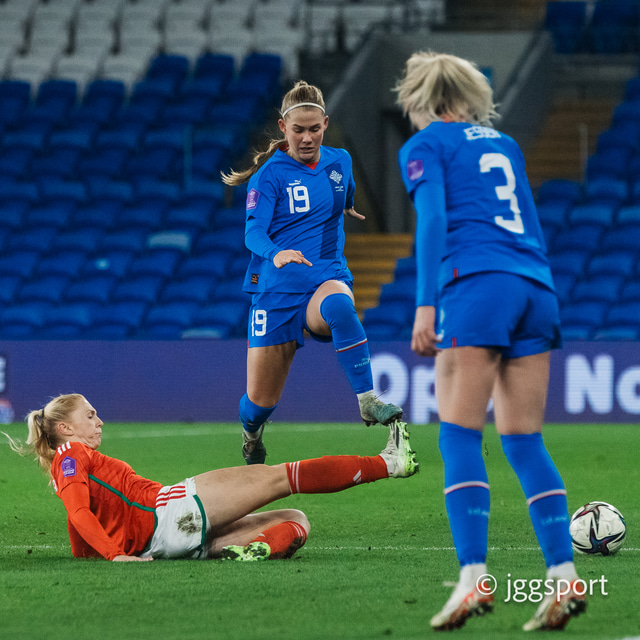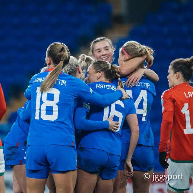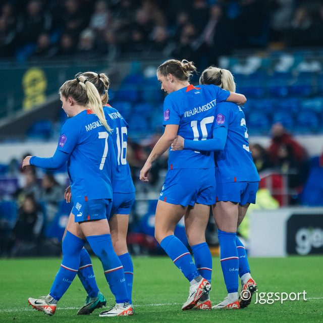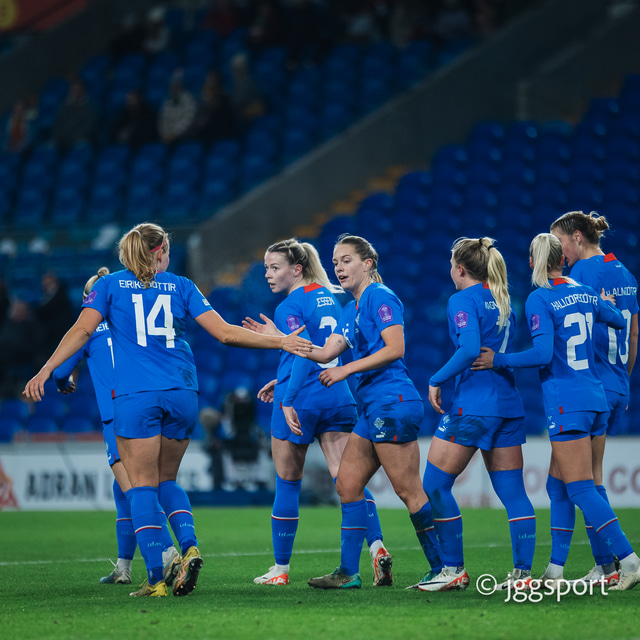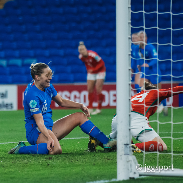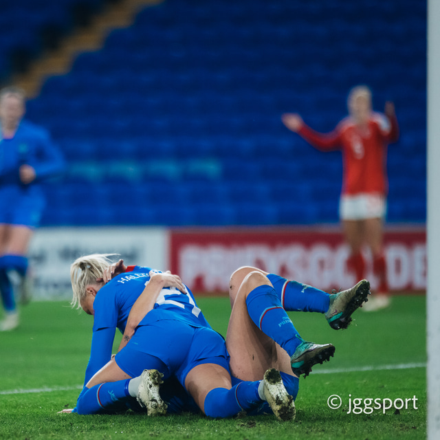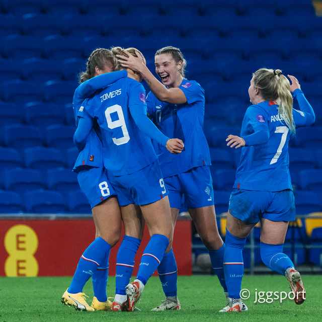 Ísland tryggði sér sæti í umspili um áframhaldandi sæti í A-deild Þjóðadeildar kvenna með 1  - 2 útisigri Í Wales í gær. Jónína Guðbjörg Guðbjartsdóttir tók þessar myndir á leiknum.