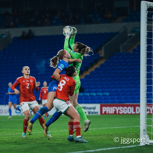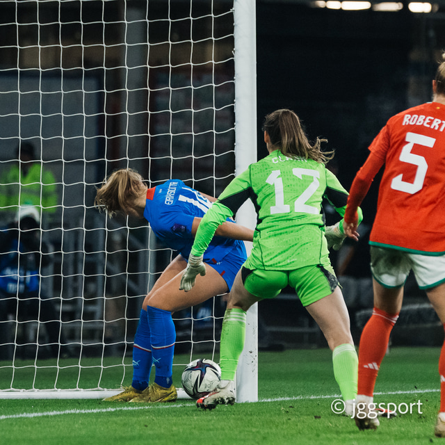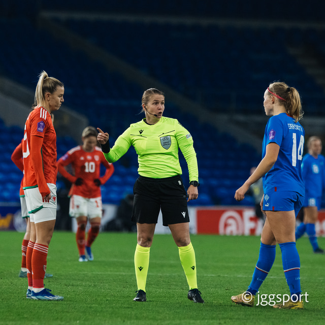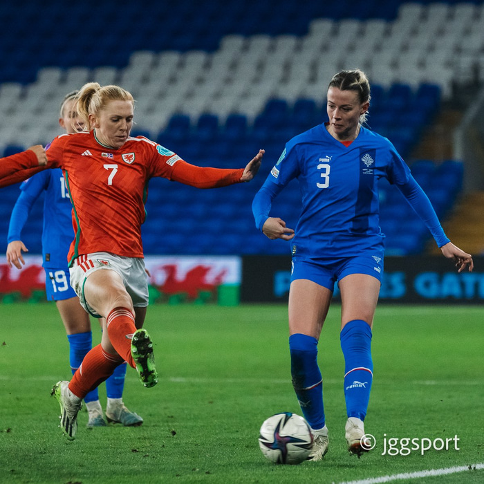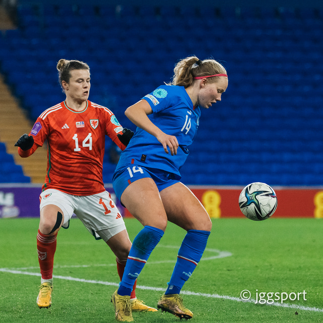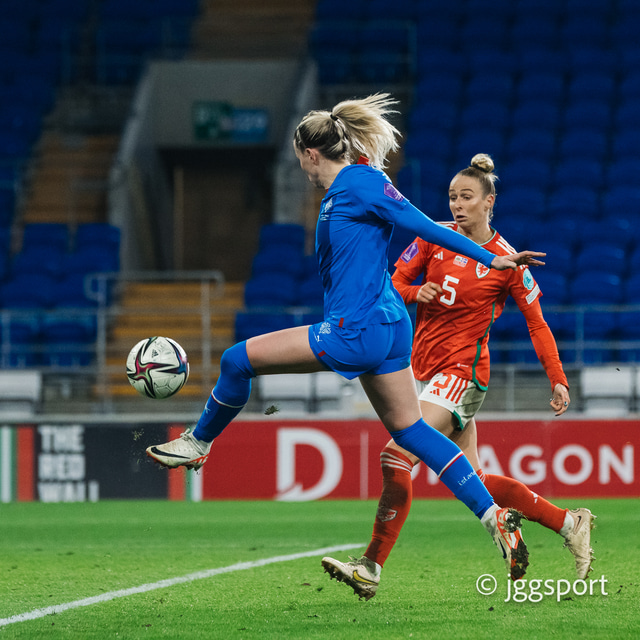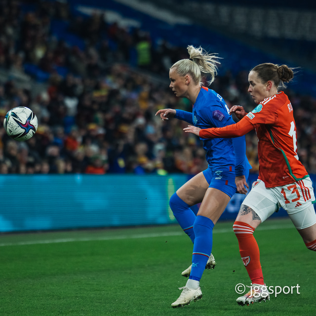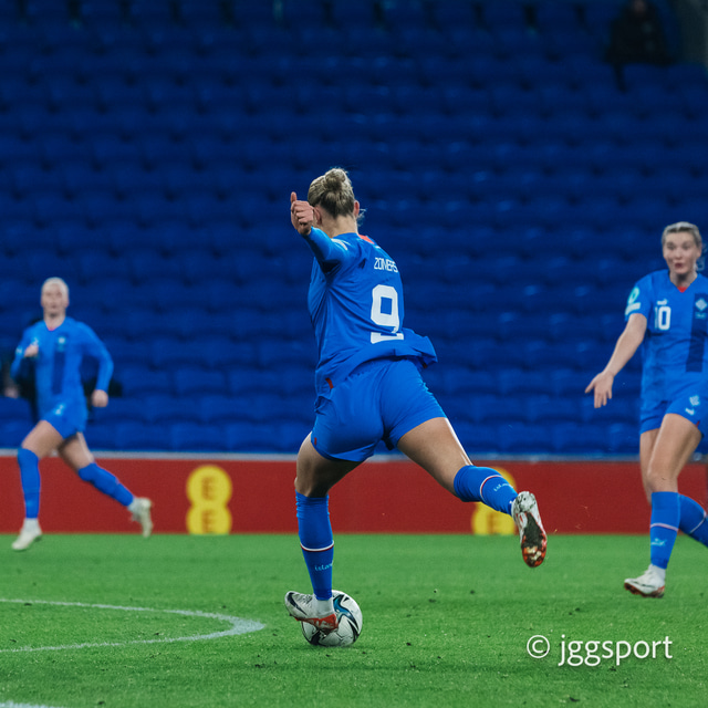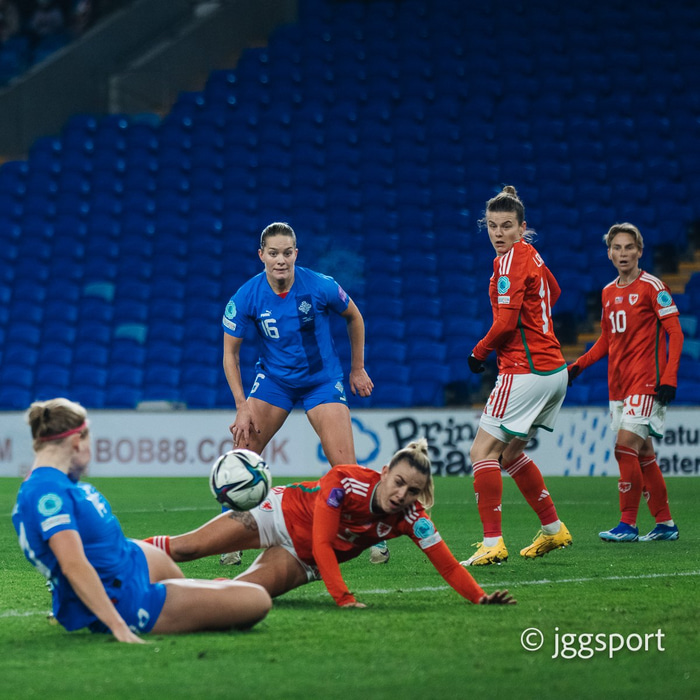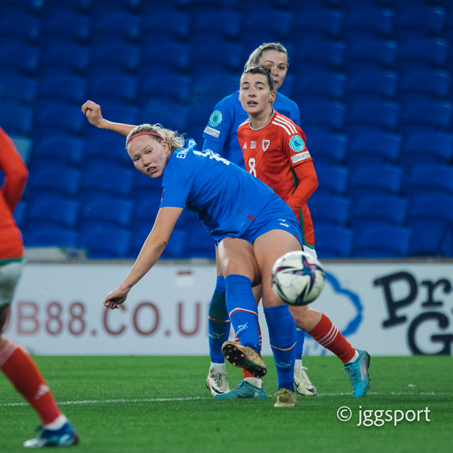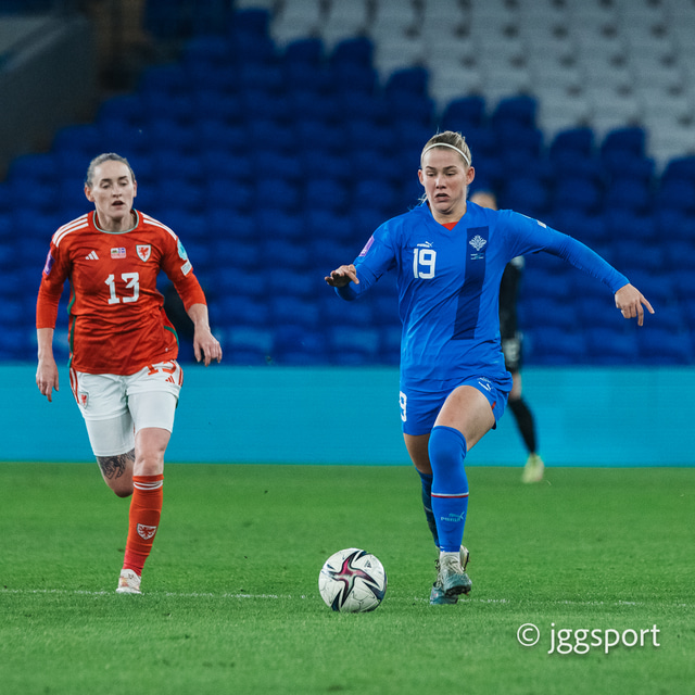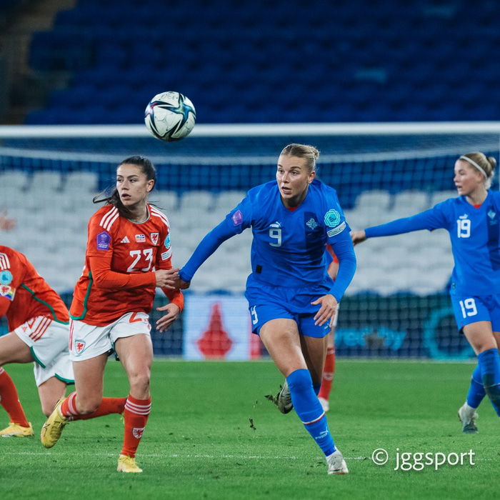 Ísland tryggði sér sæti í umspili um áframhaldandi sæti í A-deild Þjóðadeildar kvenna með 1  - 2 útisigri Í Wales í gær. Jónína Guðbjörg Guðbjartsdóttir tók þessar myndir á leiknum.