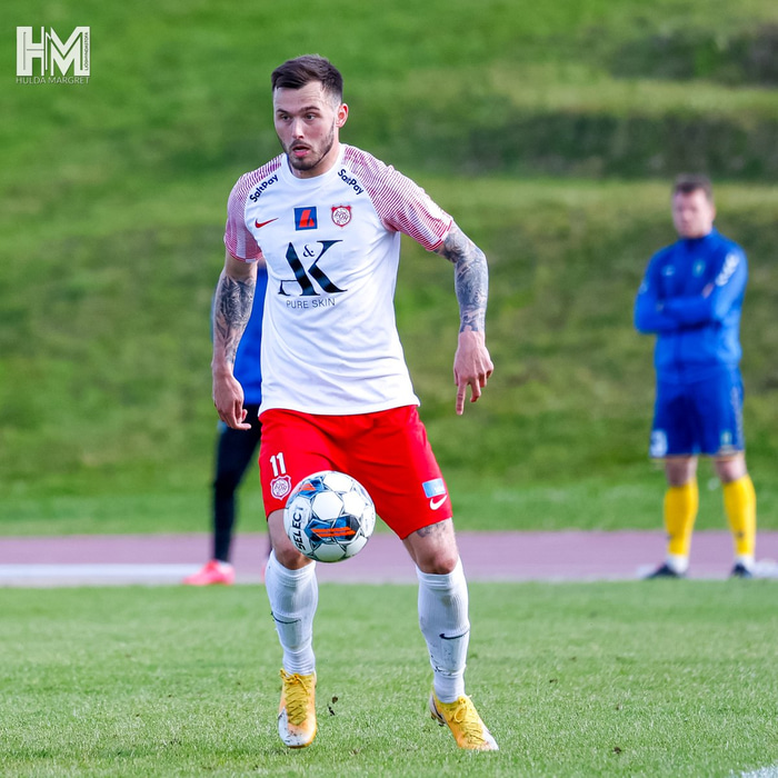 „Hann hefur komið vel inn í þetta. Hann er í færeyska landsliðinu og er prófíll sem við vorum að leita að. Hann er fljótur og hleypur djúpt. Við misstum Nökkva sem er fljótur og áræðinn leikmaður. Okkur vantaði þessa týpu. Núna erum við komnir með rosalega flottar og mismunandi týpur í liðið okkar. Við erum með stráka sem finnst gott að fá boltann í lappir og spila á litlu svæði og erum komnir með nokkra sem eru beinskeyttari og góðir á stóru svæði."