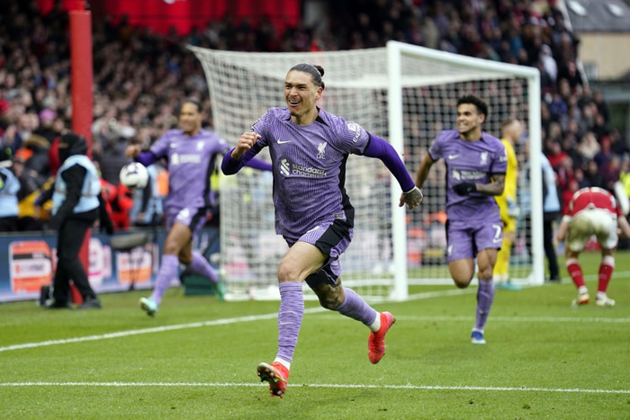 Darwin Nunez var hetja Liverpool í vægast sagt dramatískum sigri gegn Nottingham Forest í gær.