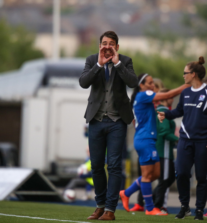 Freyr Alexandersson var augljóslega í sjöunda himni með glæsilegan sigur íslenska kvennalandsliðsins á því skoska í undankeppni fyrir EM 2017.