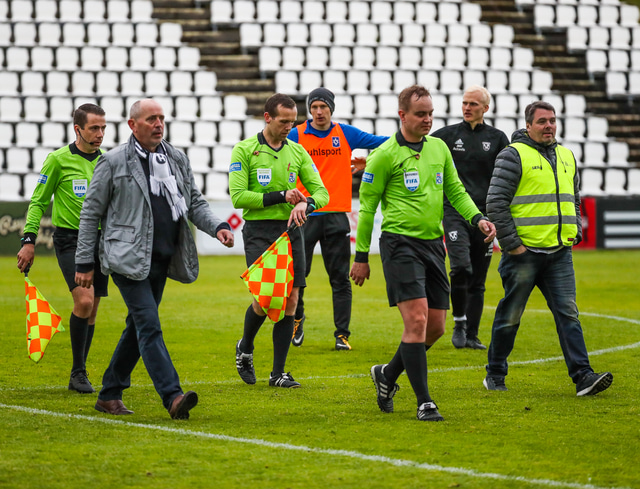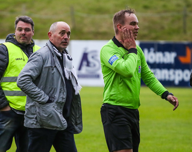 Skömmu síðar voru FH-ingar ósáttir með að Þorvaldur Árnason dómari hafi ekki dæmt vítaspyrnu og eftir að flautað var til leiksloka kom formaður FH, Jón Rúnar Halldórsson, inn á völlinn og sagði sína skoðun við dómara leiksins. Gæslumennirnir voru þó lítið að kippa sér upp við það.