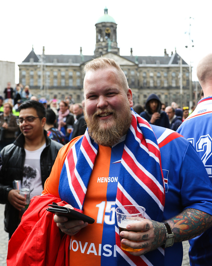 Maggi "Peran" og Sölvi Tryggvason eru á meðal 3000 Íslendinga sem verða á Amsterdam Arena í kvöld þegar Holland og Ísland eigast við.