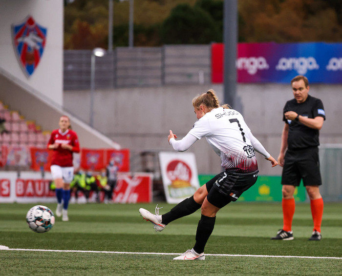 „Við vorum frekar þéttar og þetta var bara barátta. Þetta var þannig leikur að sigurinn hefði getað dottið hvoru megin sem er," sagði Agla María um leikinn en það var hún sem skoraði markið sem skildi liðin að í kvöld.