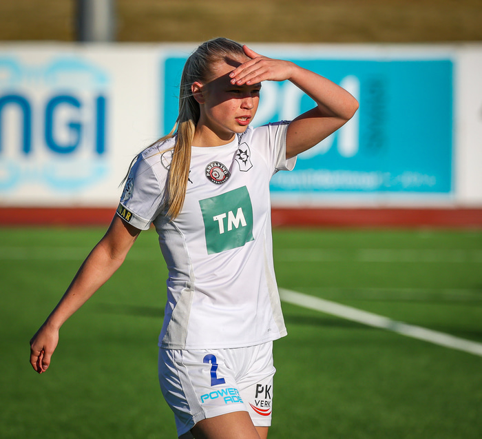 Sóley Edda er 16 ára gömul unglingalandsliðskona sem lék sextán leiki með Stjörnunni í Bestu deildinni á nýafstaðinni leiktíð.