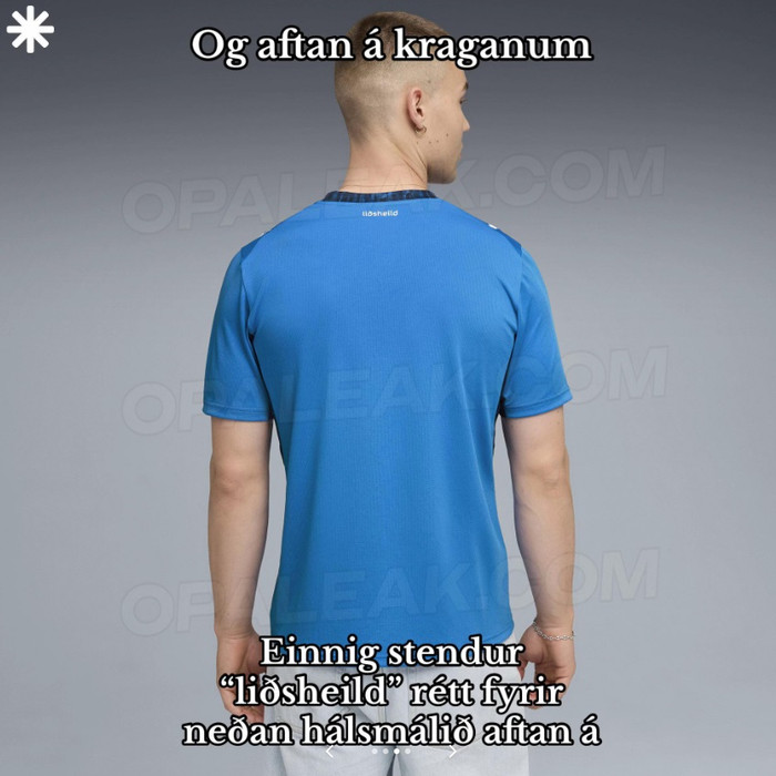 Ingvar Breiðfjörð birti myndir af nýju treyjunni á TikTok í gær og gefur henni sjálfur 4 af 10 í einkunn. Fyrir neðan kragann aftan á treyjunum má finna orðið 'liðsheild'.