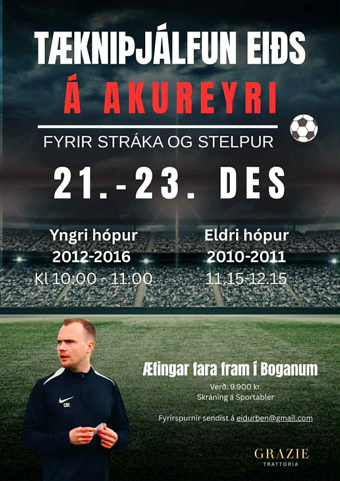 Tækniþjálfun Eiðs er nýr fótboltaskóli sem mun bjóða krökkum á Akureyri upp á þjálfun í skólafríum. Eiður Benedikt Eiríksson er aðstoðarþjálfari meistaraflokks karla hjá Þór.