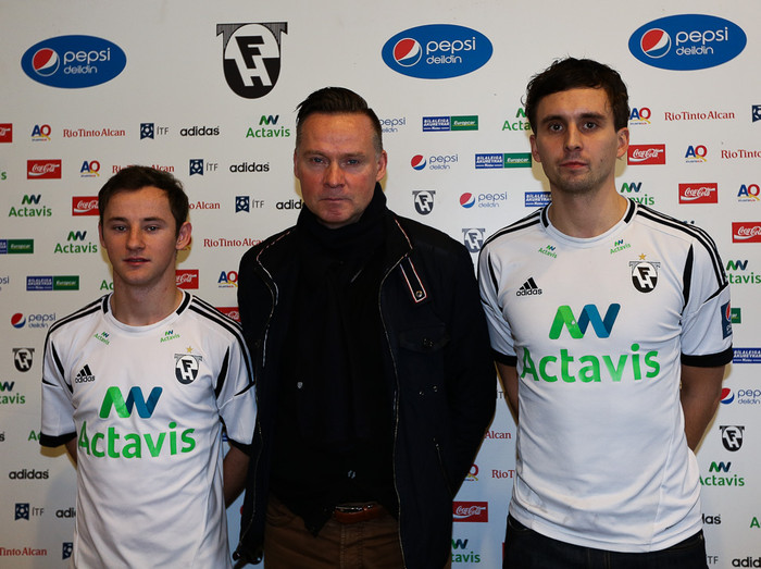 Bjarni Þór Viðarsson kom einnig til liðs við FH í dag og hér er Jeremy með honum og Heimi Guðjónssyni þjálfara.
