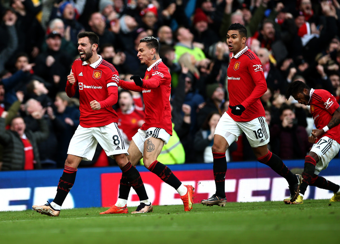 Man Utd: De Gea (6), Wan-Bissaka (6), Varane (7), Martinez (7), Shaw (7), Casemiro (5), Fred (6), Antony (6), Fernandes (8), Rashford (7), Weghorst (6).