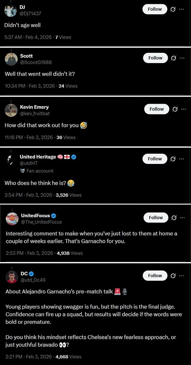 Stuðningsmenn Manchester United voru fljótir að skrá sig inn á samfélagsmiðla og skjóta á Garnacho, sinn fyrrum leikmann, og gera grín að ummælum hans.
