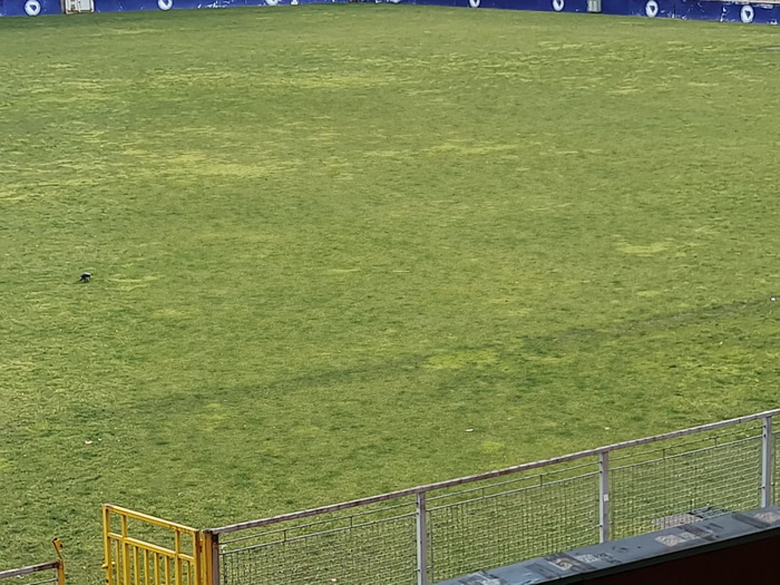 Undankeppni EM 2024 hefst 23. mars næstkomandi þegar Ísland sækir Bosníu/Herzegóvínu heim á þennan völl. Enginn vallarstarfsmaður sinnti vellinum síðan í október og ástandið var mjög slæmt.