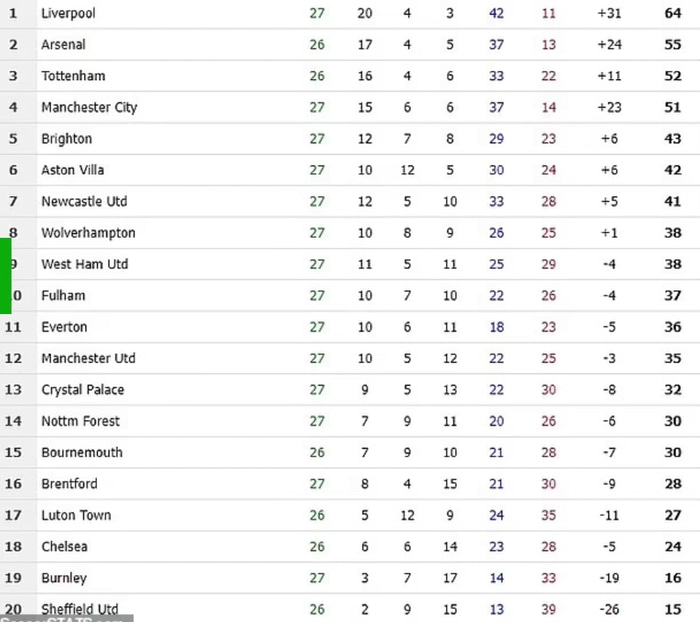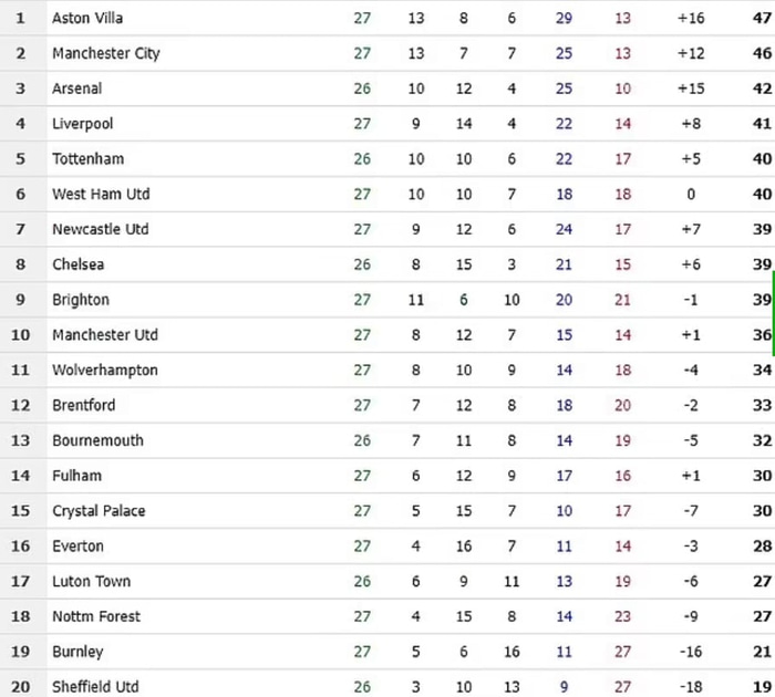 Ef einungis er horft til fyrri hálfleikja í leikjum er Aston Villa með 45 stig á toppnum en í seinni hálfleikjum er liðið aðeins í sjötta sæti.