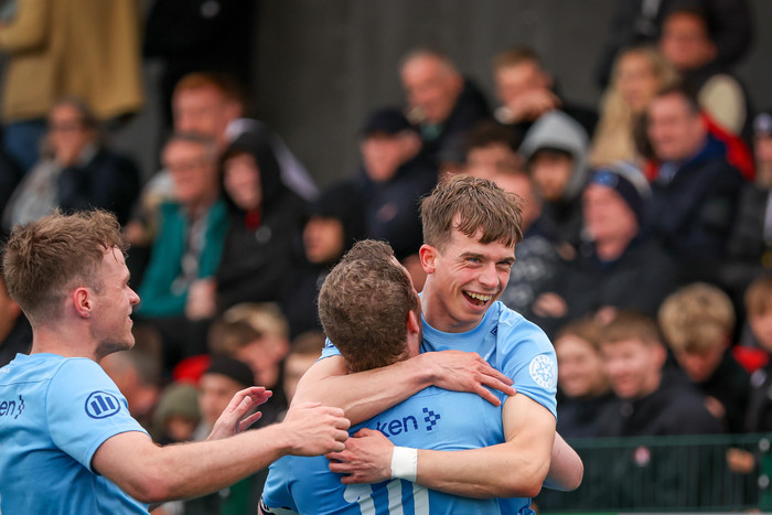„Ég var búinn að sjá að markvörðurinn var aðeins að taka sénsa þegar maður var að negla boltanum fyrir. Þannig ég ákvað að skjóta í hann og inn og það virkaði," sagði Kjartan og brosti.