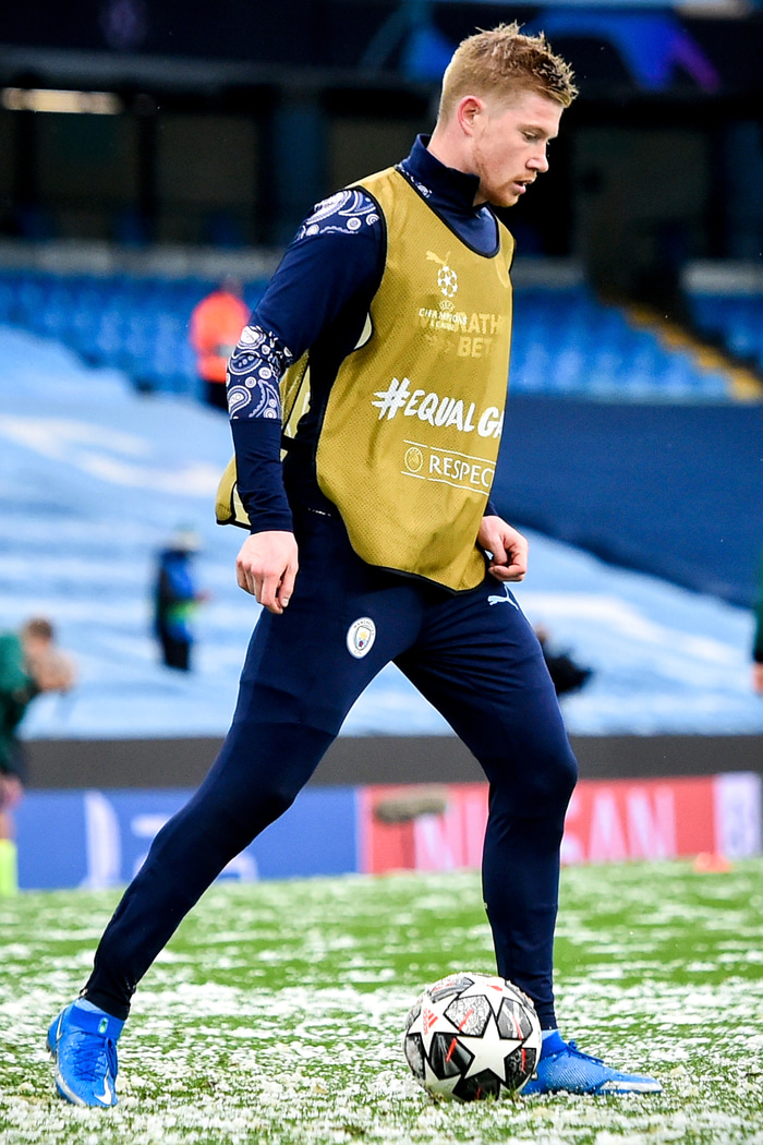 Það er snjókoma í Manchester þar sem viðureign Manchester City og PSG mætast í seinni leik liðanna í undanúrslitum Meistaradeildarinnar.